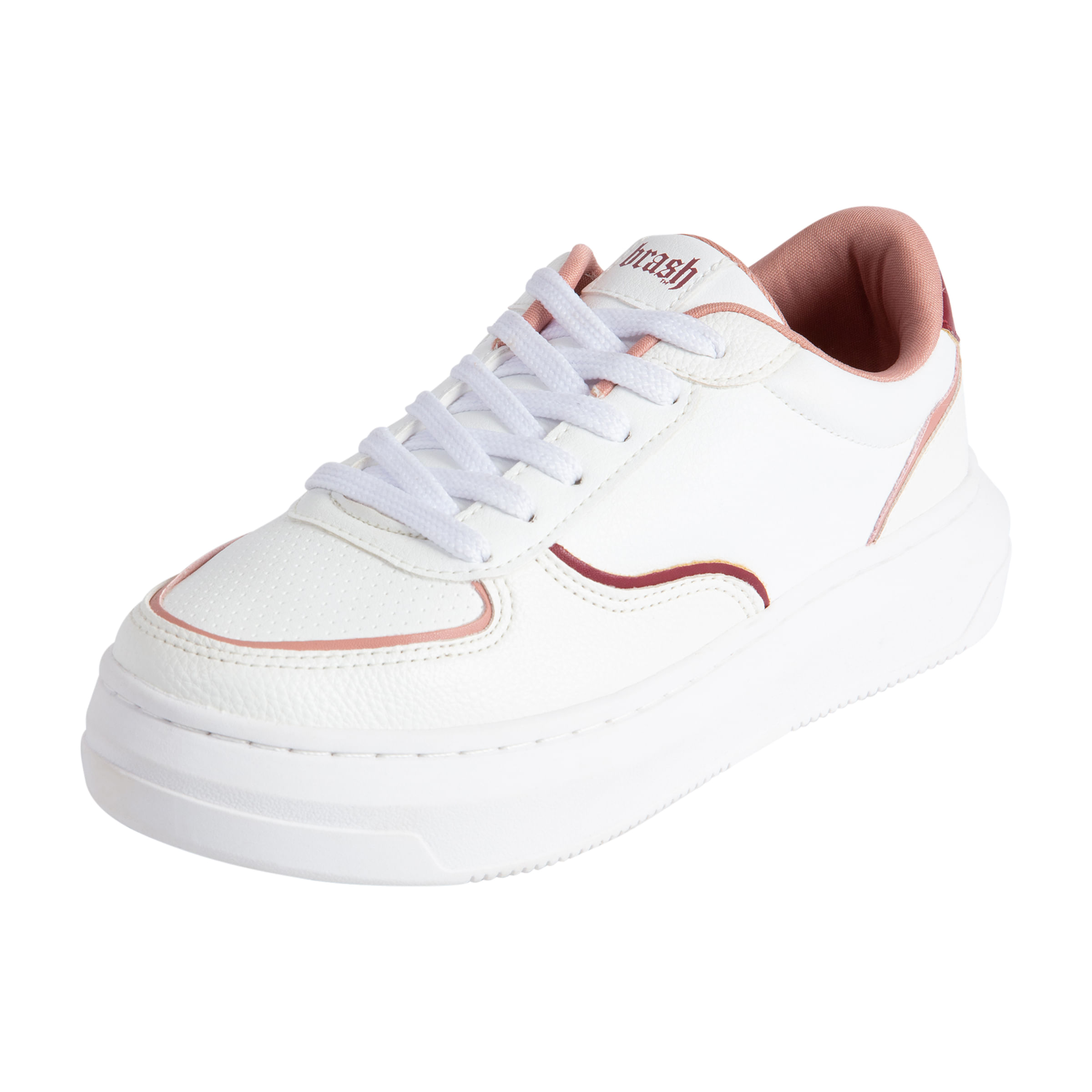 Estas zapatillas casuales para mujeres adultas presentan un diseño blanco limpio con sutiles detalles en crema nude. Confeccionados en poliéster duradero, ofrecen un ajuste cómodo y transpirable. Los zapatos están terminados con un elegante cierre de cordones blanco y un tacón plano y elegante, lo que agrega un toque de elegancia. Perfectas para el uso diario, estas zapatillas combinan estilo y practicidad sin esfuerzo.