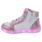 ¡Eleva el estilo de tu niña con las zapatillas LED de caña alta Smart Fit! Diseñadas en color blanco con detalles en rosa metalizado, purpurina y una estrella decorativa, estas zapatillas combinan moda y diversión. La suela iluminada con LED agrega un toque mágico a cada paso, mientras que los cordones ajustables aseguran un ajuste perfecto. Fabricados con materiales duraderos, brindan comodidad y soporte para el uso diario. Perfectas para actividades escolares, salidas u ocasiones especiales, estas zapatillas son la combinación ideal de estilo y funcionalidad.